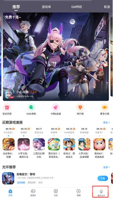 1、在手机下载光环助手官方正版,便可以看到清爽的使用界面。