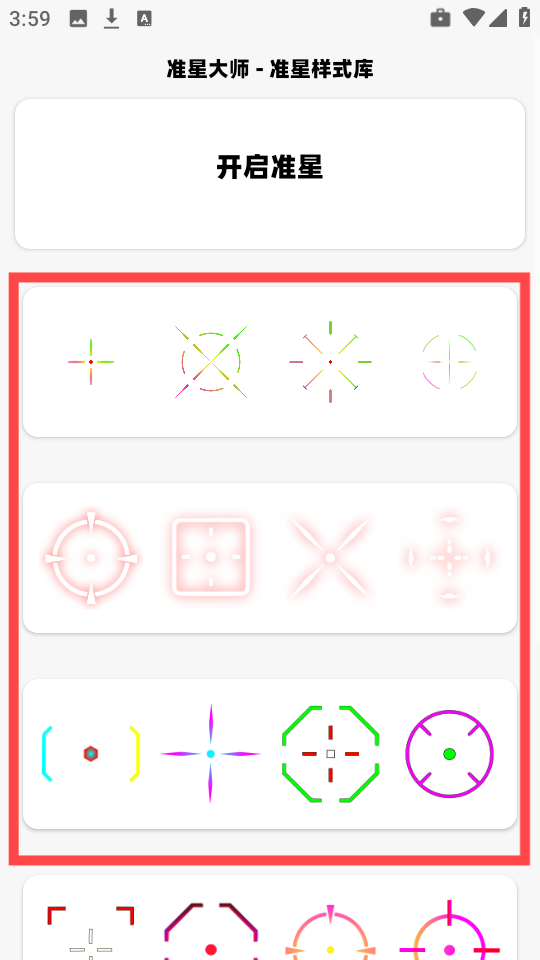 准星大师瞄准器是一款免费好用的吃鸡游戏准星辅助助手,为玩家在游戏屏幕中心提供一个准星,使玩家更好的能将目标移动到准星的正中心,包含十字、激光在内各种类型的手机准星使用,能完美是适配设备上使用满足用户的需求。