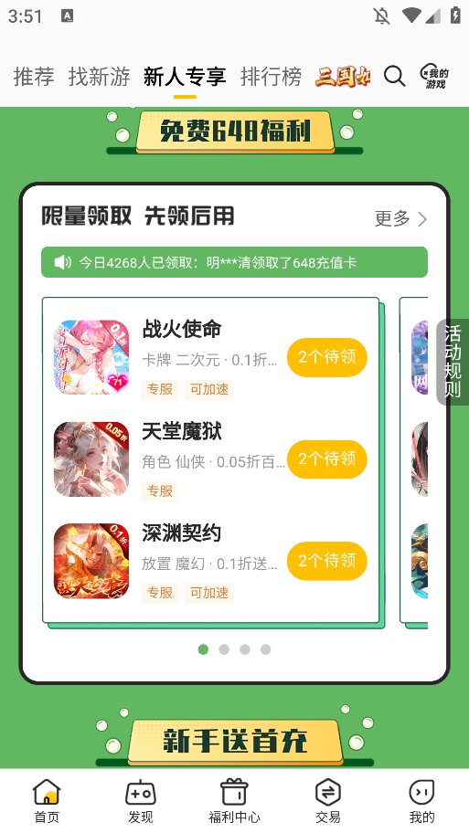 咪噜游戏手游盒子原名麦游游戏盒子后改名为咪噜游戏盒子,该手游盒子能够为玩家提供最全面的手游服务,不仅有精品游戏的下载服务,还有交易账号,出租账号,买卖道具等功能可以实现,不仅如此还为各位玩家提供了海量游戏礼包。