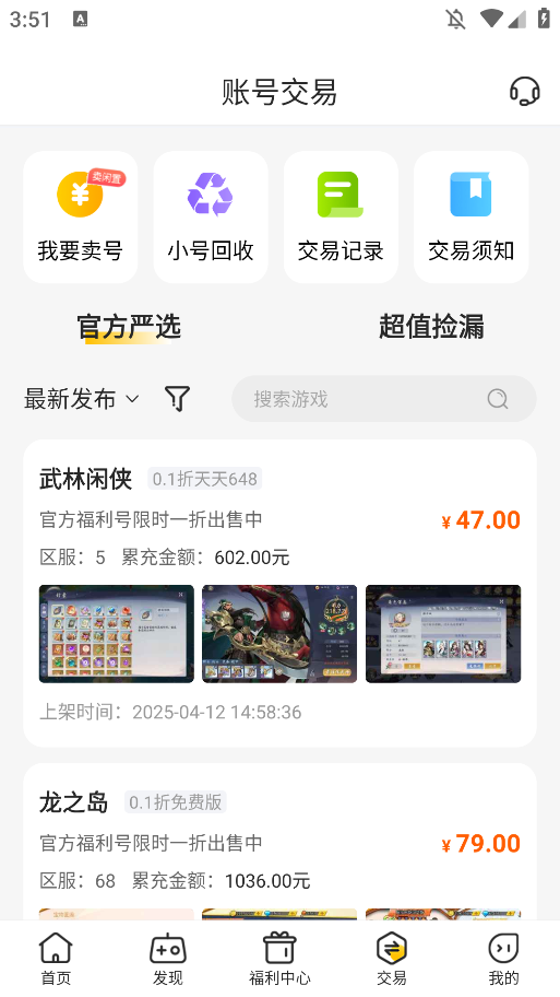 3.在搜索结果中找到你想要交易的游戏账号即可。