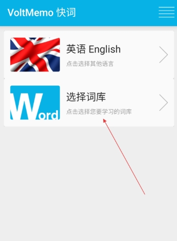 1、打开VoltMemo快词,点击【选择词库】选项进入词库选择页面