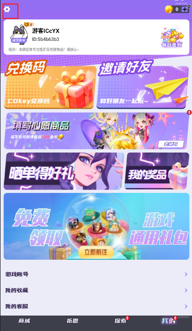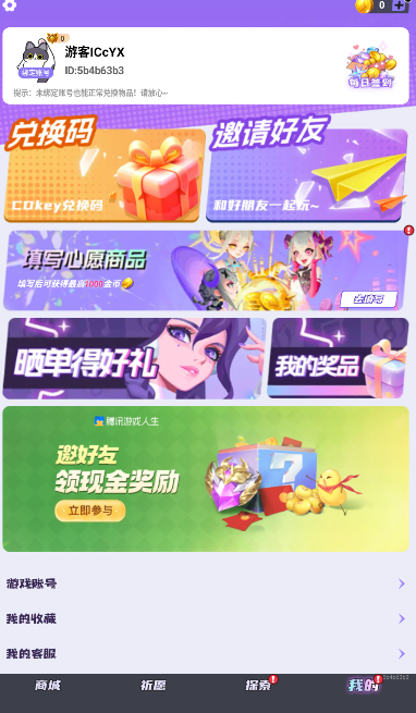 3、在我的里面可以看到领取游戏皮肤的多种选项