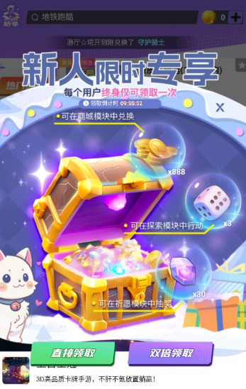 1、新人用户可以获取到新人专享好礼,直接领取各种游戏皮肤使用