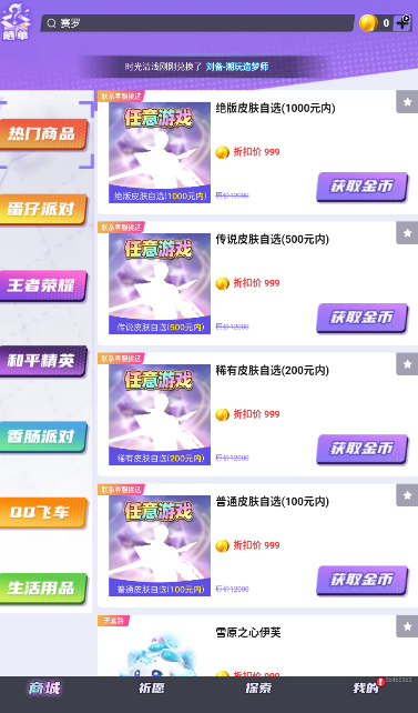 领皮乐园一款可以免费领取游戏皮肤的软件,内部为用户提供各种游戏的皮肤资源,用户可以参与软件中的各种任务进行获取金币福利进行兑换领取到自己喜欢的游戏皮肤,众多热门游戏的皮肤,满足用户对不同游戏的皮肤需求。