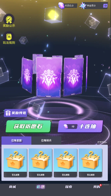 2、点击底部的祈愿板块可以看到抽奖和祈愿石用户可以使用