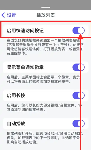 4、进入页面,点击【启用快速访问按钮】后侧按钮打开即可