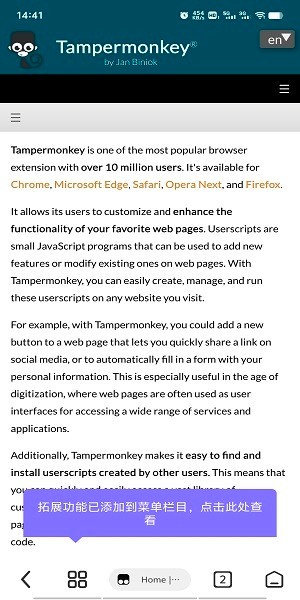 3、按装成功以后,就可以点击查看扩展功能,也就是插件相关说明