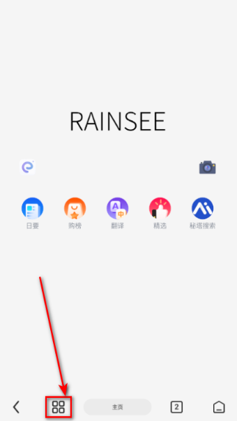 1、打开雨见浏览器软件,点击下方【图标】