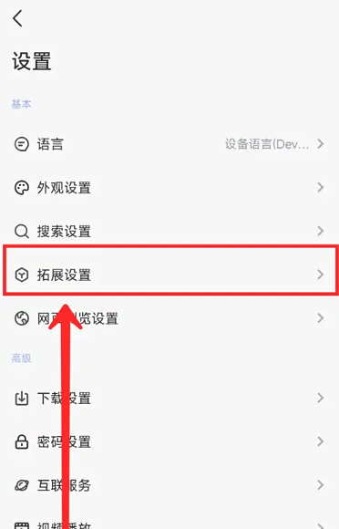 3、进入设置页面后,点击【拓展设置】选项