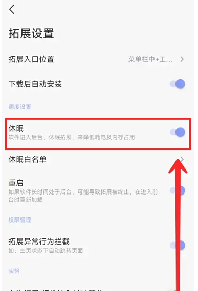 雨见浏览器怎么开启拓展休眠功能