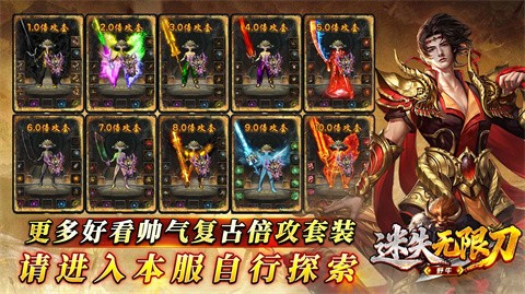 野牛迷失无限刀有着爽快的热血版本传奇,完美复刻,超多经典地图BOSS, 更有经典特戒玩法,增加本服乐趣,无限升级,无限进化,打出一件神器就起飞!